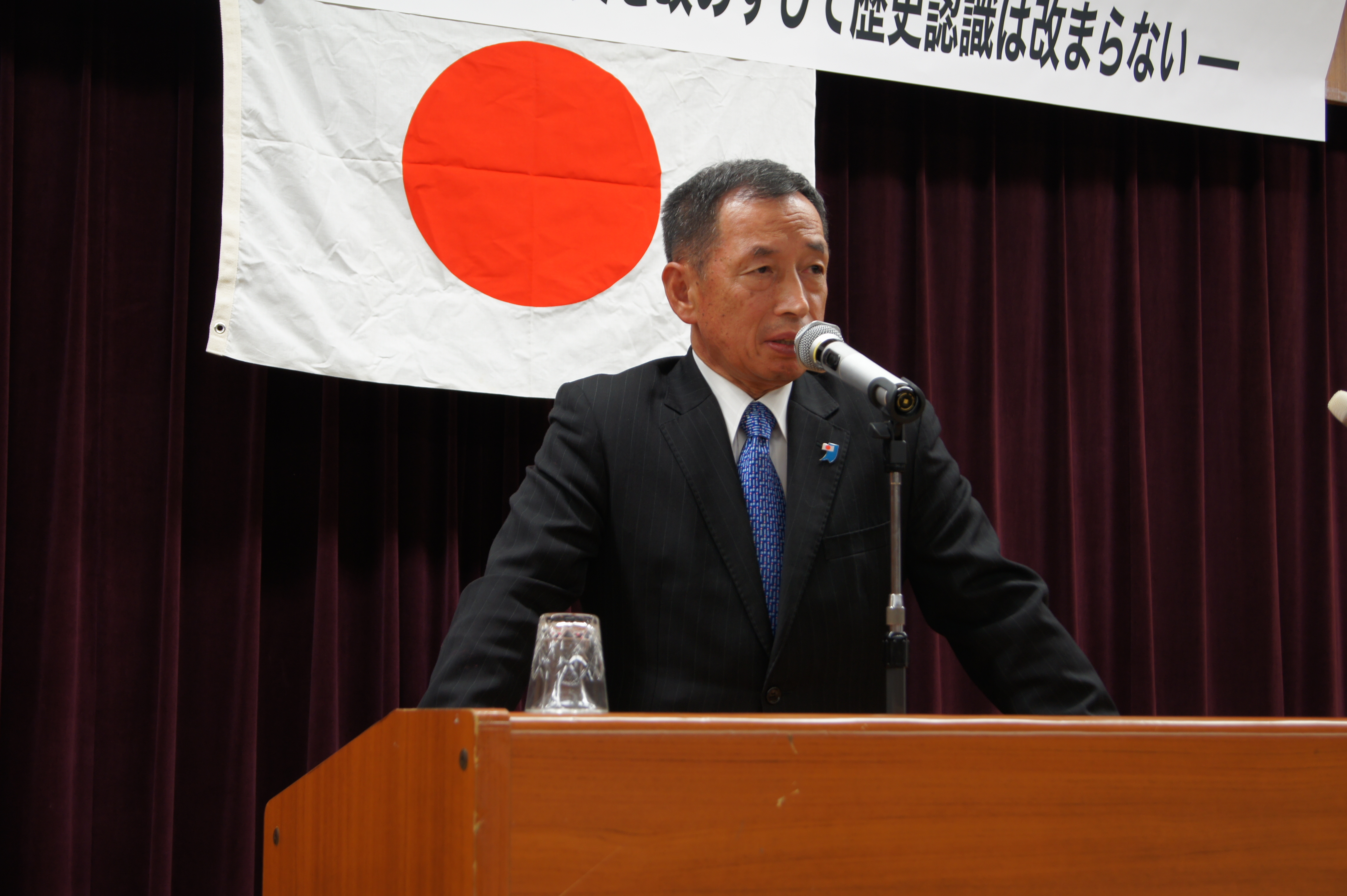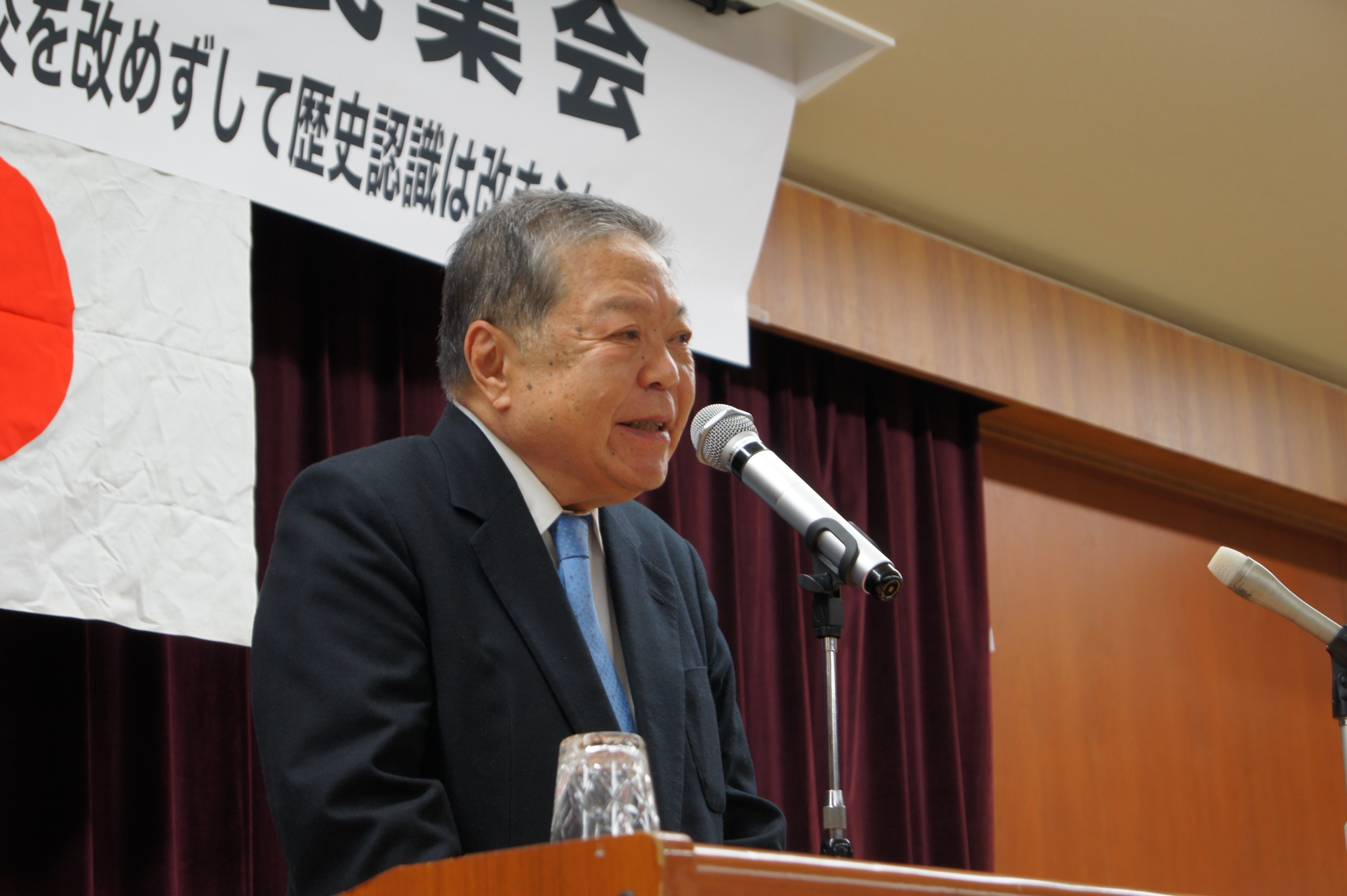 続いて杉原誠四郎・当会会長は対米戦開戦時の際、外務省の不手際で米国への通達が遅延したこの失態が後々の日本の国益に大きなマイナスとなったにもかかわらず、戦後、その責任者が外務次官に出世し、最高勲章まで授与していることを指摘し、責任を隠蔽した外務省を非難しました。